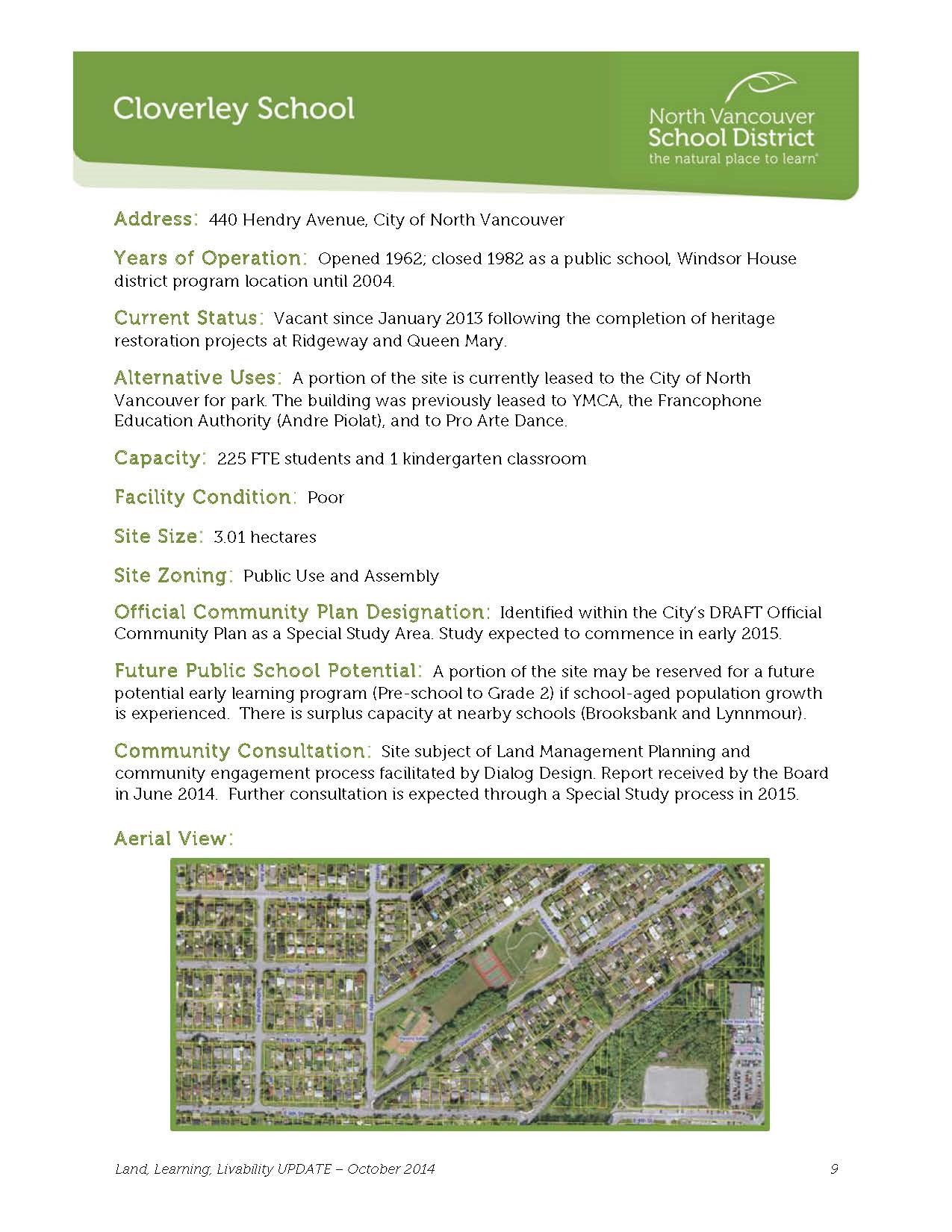was confirmed for the Cloverley school and Lucas Centre/LMCC properties.