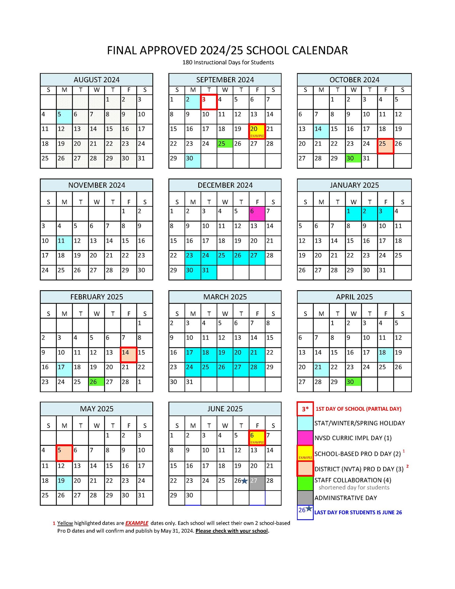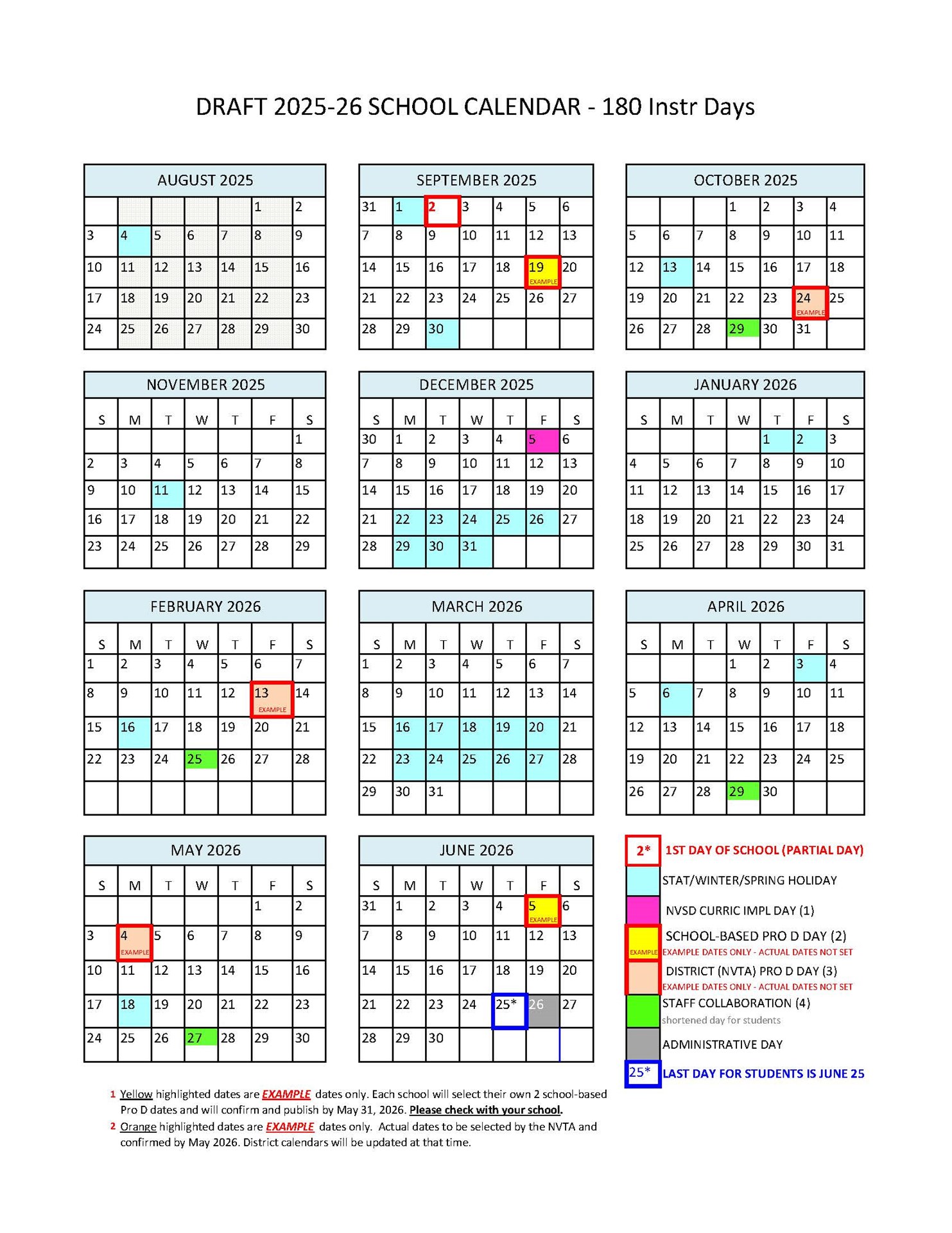 The 2025/26 School Calendar was approved by the Board of Education on February 25, 2025 and includes the following key dates: