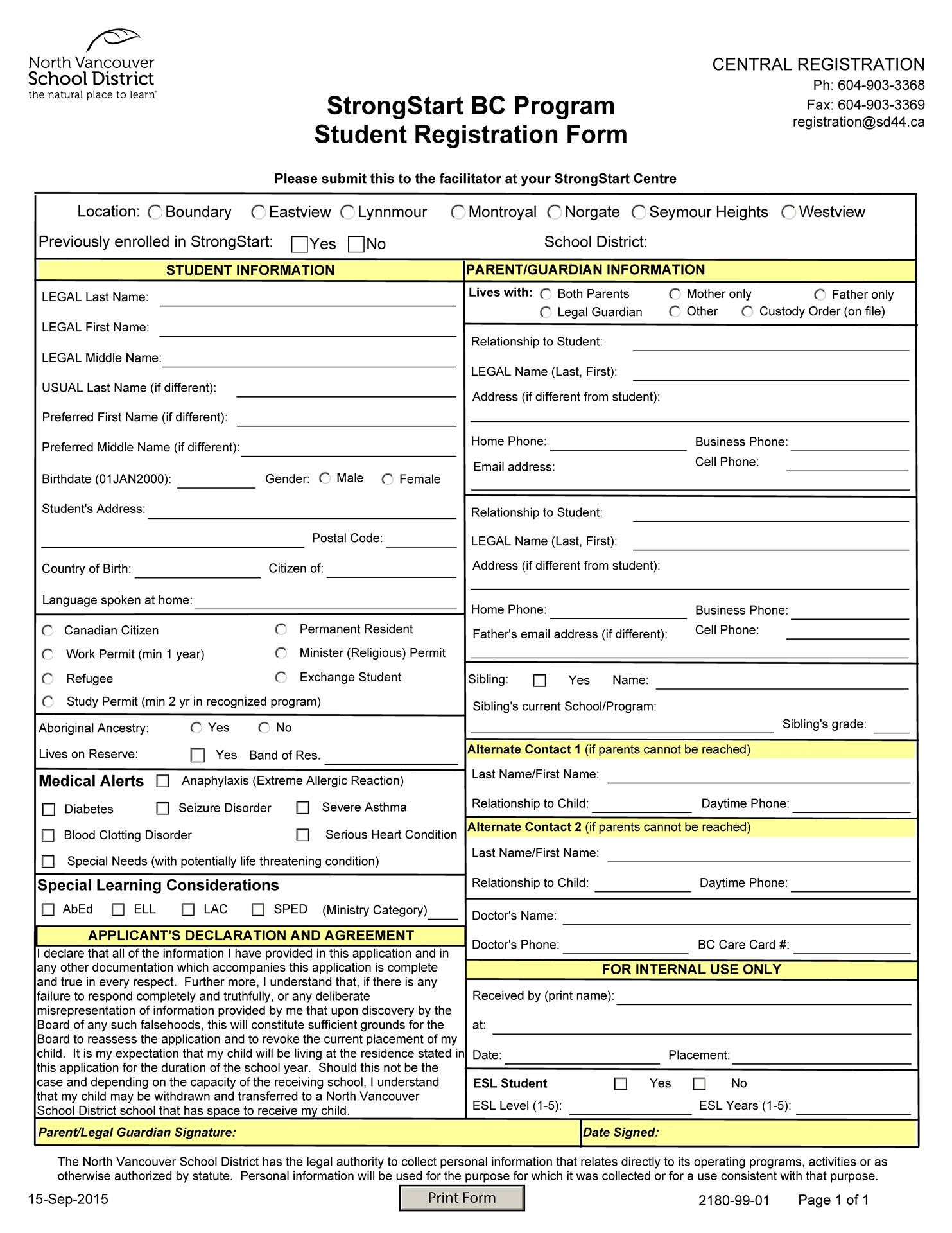 Please complete the StrongStart registration form. You can complete it when you drop-in on your first day or complete it at home to bring with you on your first day. For students new to the StrongStart BC program, please use the StrongStart Program β