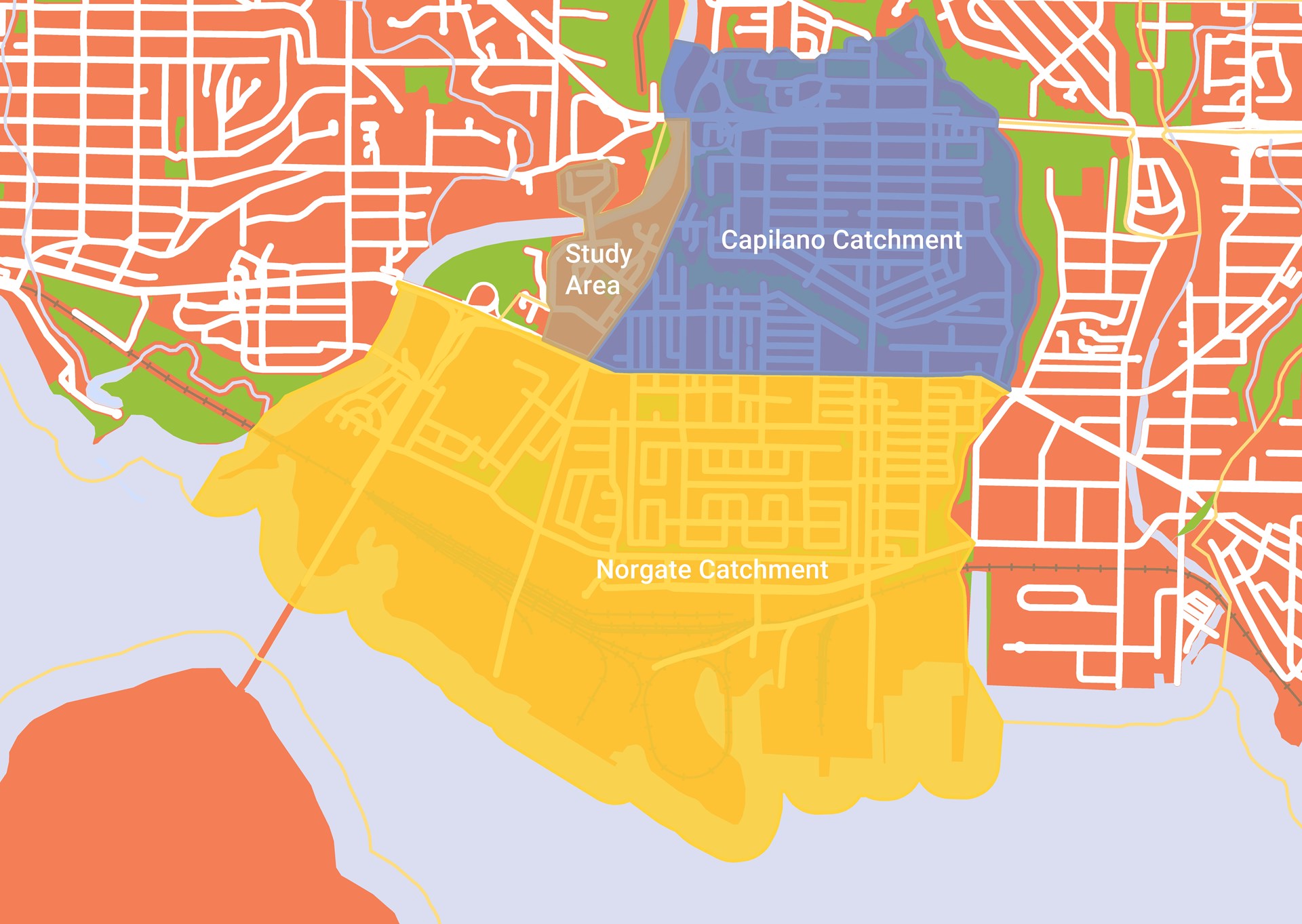 βThe catchment change option being considered would move a small portion in the south-west section of the current Capilano Elementary School catchment area into the Norgate Community Elementary School catchment area. The area of consideration for the move is located west of Capilano Road between Marine Drive to the south and the Upper Levels Highway to the North. It encompasses Fullerton Ave, Glenaire Dr, Belle Isle Pl, Curling Rd, Sandown Pl, McLallen Crt, and the Woodcroft Residential Complex area.
