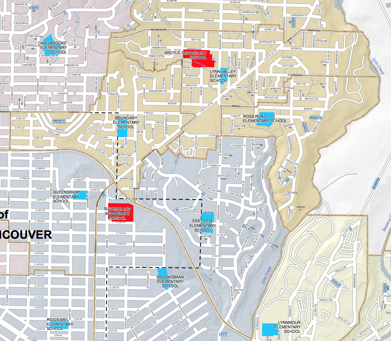 The catchment change option being considered would move a small portion in the southern section of the current Lynn Valley Elementary School catchment area into the Eastview Elementary School catchment area. The area of consideration for the move is located between Lynn Valley Road to the north-west, Kirkstone Park to the south, and Mountain Hwy to the east. It encompasses Fromme Rd, Whiteley Crt and E 27th St.