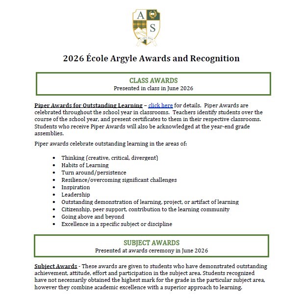 June 9/10, 2026 - Music Awards (evening)June 11, 2026 - Athletic Awards (evening)June 16, 2026 - School Awards (evening)