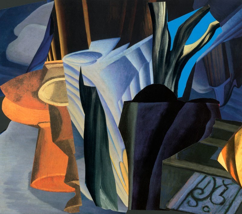 Often beginning as paper collages cut from modernist artists’ monographs and interspersed with personal ephemera, Kerr’s paintings rely on a pop mentality in their irreverent mashups of high and low culture. At once uncannily familiar and strikingly contemporary, his mixed media approach interpolates his diverse influences to produce paintings that echo the political urgency of his forebears in a style all his own. Reworked and repeatedly recontextualized using an automatic sensibility, Kerr at times layers collaged digital prints of his earlier paintings or hand cut swaths of painted canvas with fresh brushstrokes to generate new compositions. In other instances he situates evocative patterning and bold abstracted still lifes within disorienting depth of field and figure ground relationships. The resulting paintings are as introspectively self-referential as they are influenced by the art historical cannon.