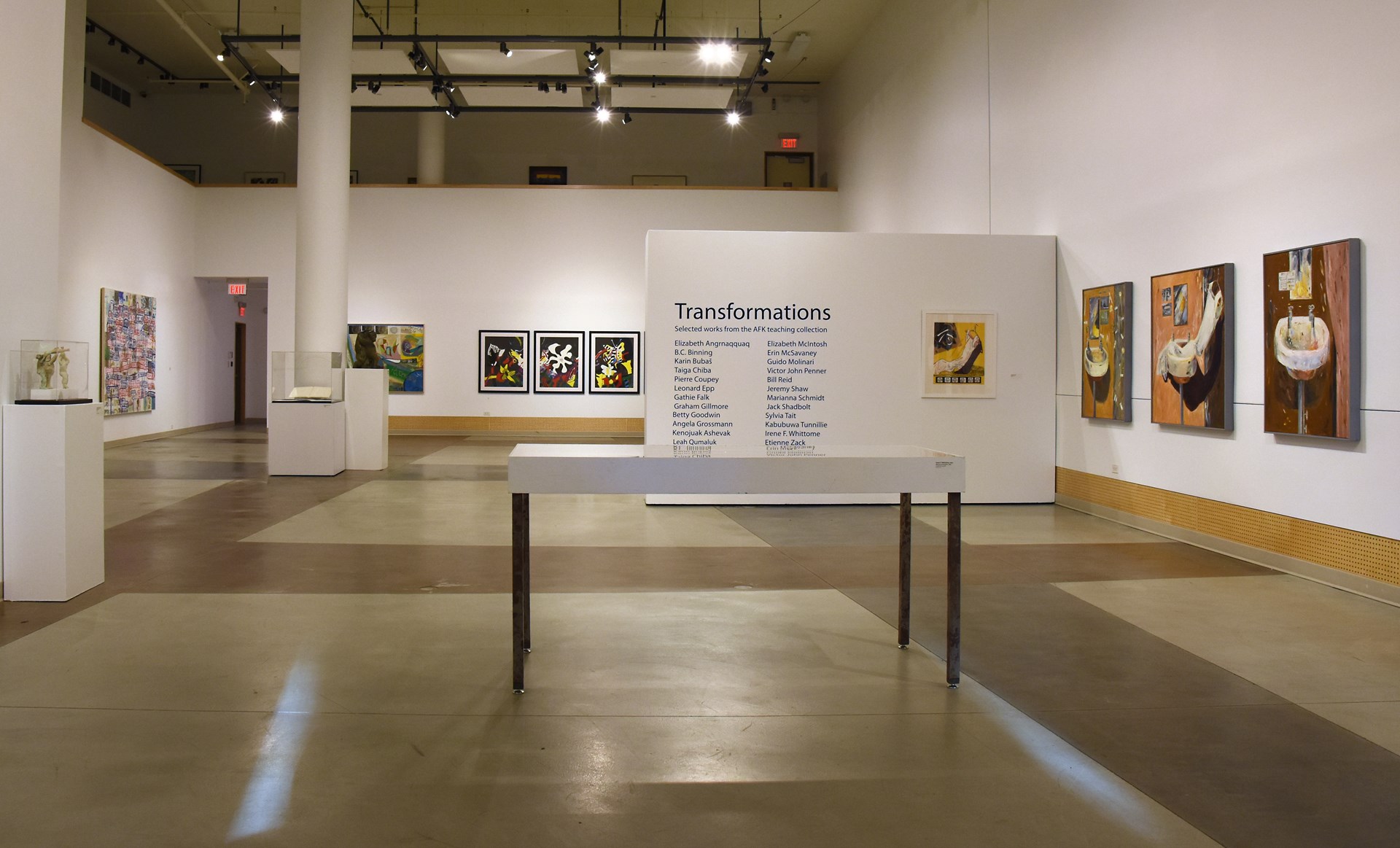 Transformations is an arrangement of artworks that depict or speak to a process of change. A simple search to define the word "transformation" yields many results: there are uses in science and mathematics, in the visual and performing arts, in business and economics and in politics and culture. "Transformation" has similarities in all of its applications as well as nuanced differences. At its core, "transformation" refers to a process of change. In the selection of these artworks, questions around the transformation of body, time and language are addressed. The artwork displayed speaks to this central idea of change both individually and in concert with the other works around it.