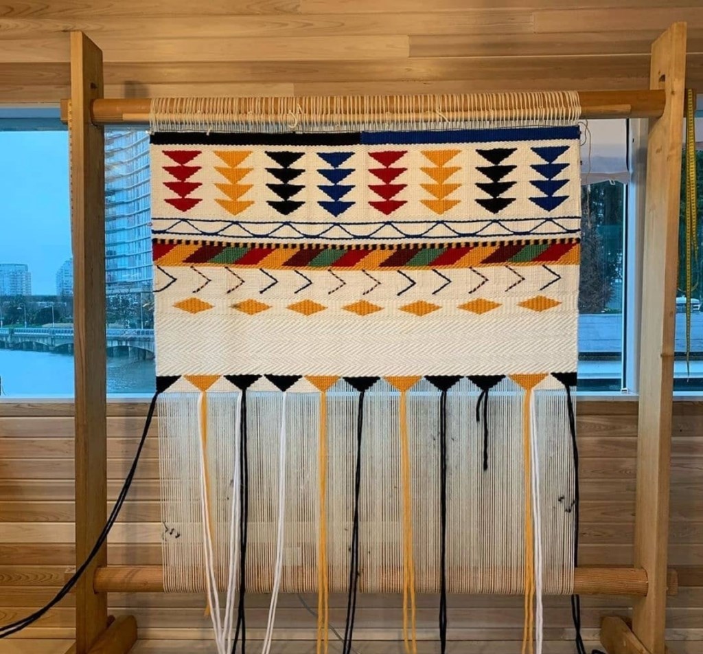 Artist Bio:Angela George carries two ancestral names, sits’sáts’tenat and qwənat. Her late mother is slatwx, Cookie Thomas (Cole/Discon/Billy family) from Sḵwxwú7mesh and her father is from the Baker family from Sḵwxwú7mesh and the Jones and Peter family on Vancouver Island. This Coast Salish mother of 4 has dedicated her career to the betterment of First Nations people and communities. Traditionally groomed, she has a strong understanding of her culture and spiritual teachings and the impacts of colonization and barriers that plague First Nations communities. She has a strong passion in traditional canoe racing, weaving and cultural singing and dancing and believes that practicing traditions and having a strong sense of identity and connection to our ancestors is vital to community wellness, development and sustainability.