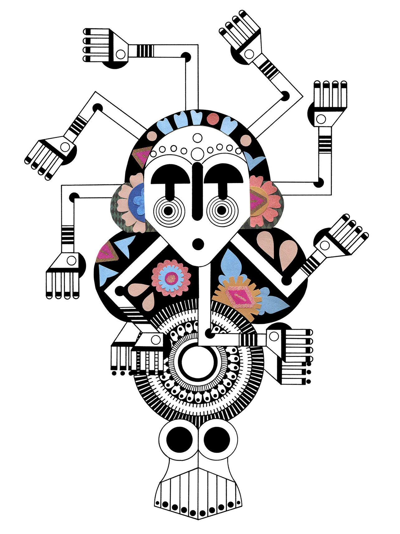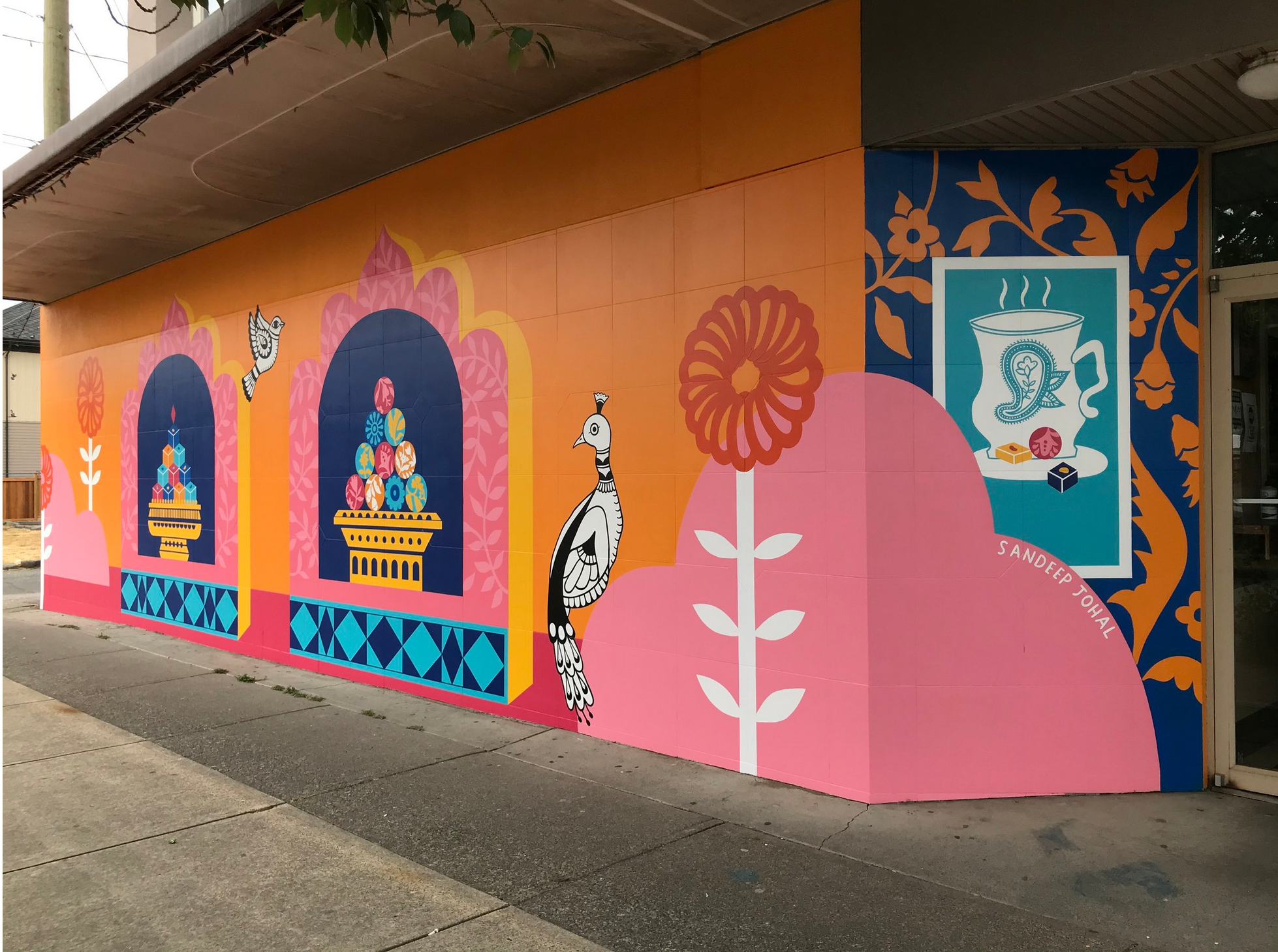 Sandeep Johal is a Canadian visual artist whose practice engages drawing, collage, textiles, and large-scale murals. Through her Indo-folk feminine aesthetic, she confronts themes of bleakness, despair and ugliness with their dissonant opposites: brightness, hope and beauty. Johal’s work typically centers around the stories of women and while she highlights female suffering in its many forms, these are ultimately stories of resistance and resilience.