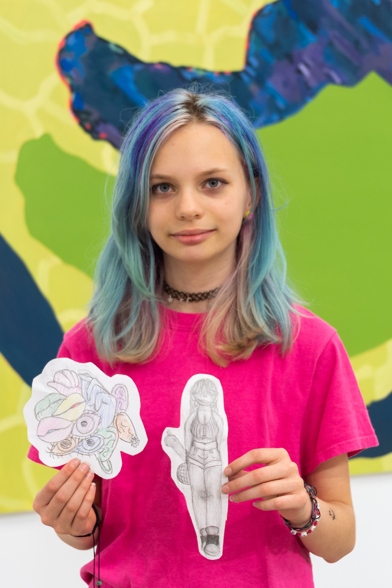 Ms. Cassidy writes: "Katie's hard work ethic, technical skills and imagination make her stand out amongst her peers. She is admired for her vibrant material application and use of colour. Her realistic imagery and understanding of depth, shadow and highlights surpass her grade level and are admired by her friends and teachers".