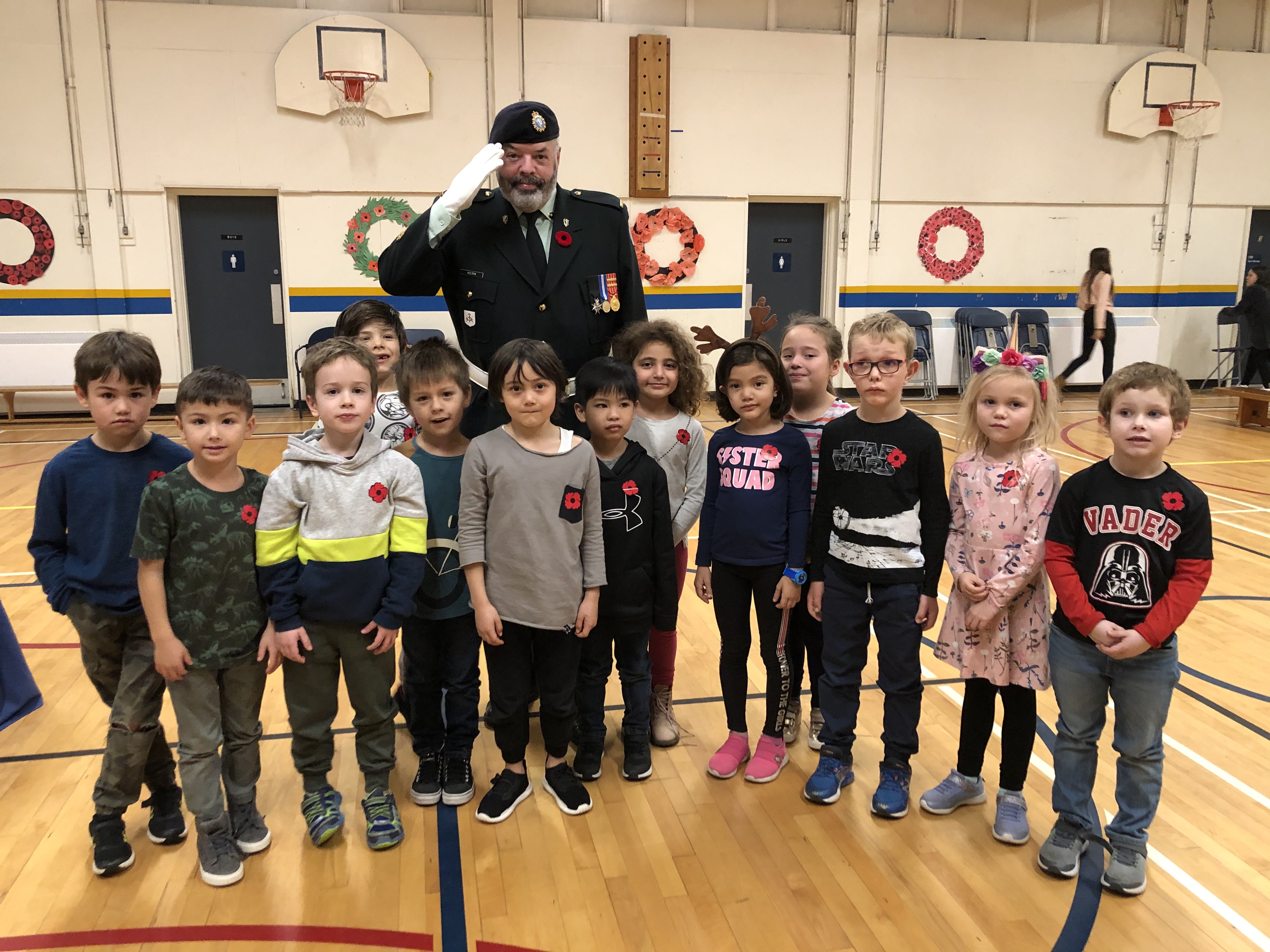 Today we had a beautiful ceremony for Remembrance Day.  The Grade 7 students lead the assembly and Mr. Forst and the choir sang two relevant and meaningful songs that celebrated our freedom and peace.  We thank Sgt. Major Kerns for coming to our assembly today.   ​ Kerns.jpg
