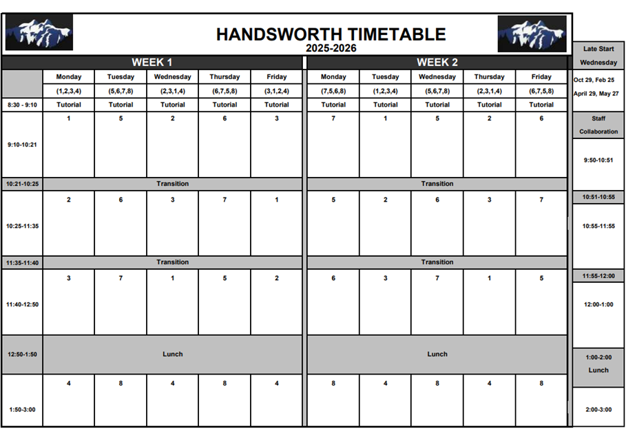 2025-2026 Handsworth Timetable
