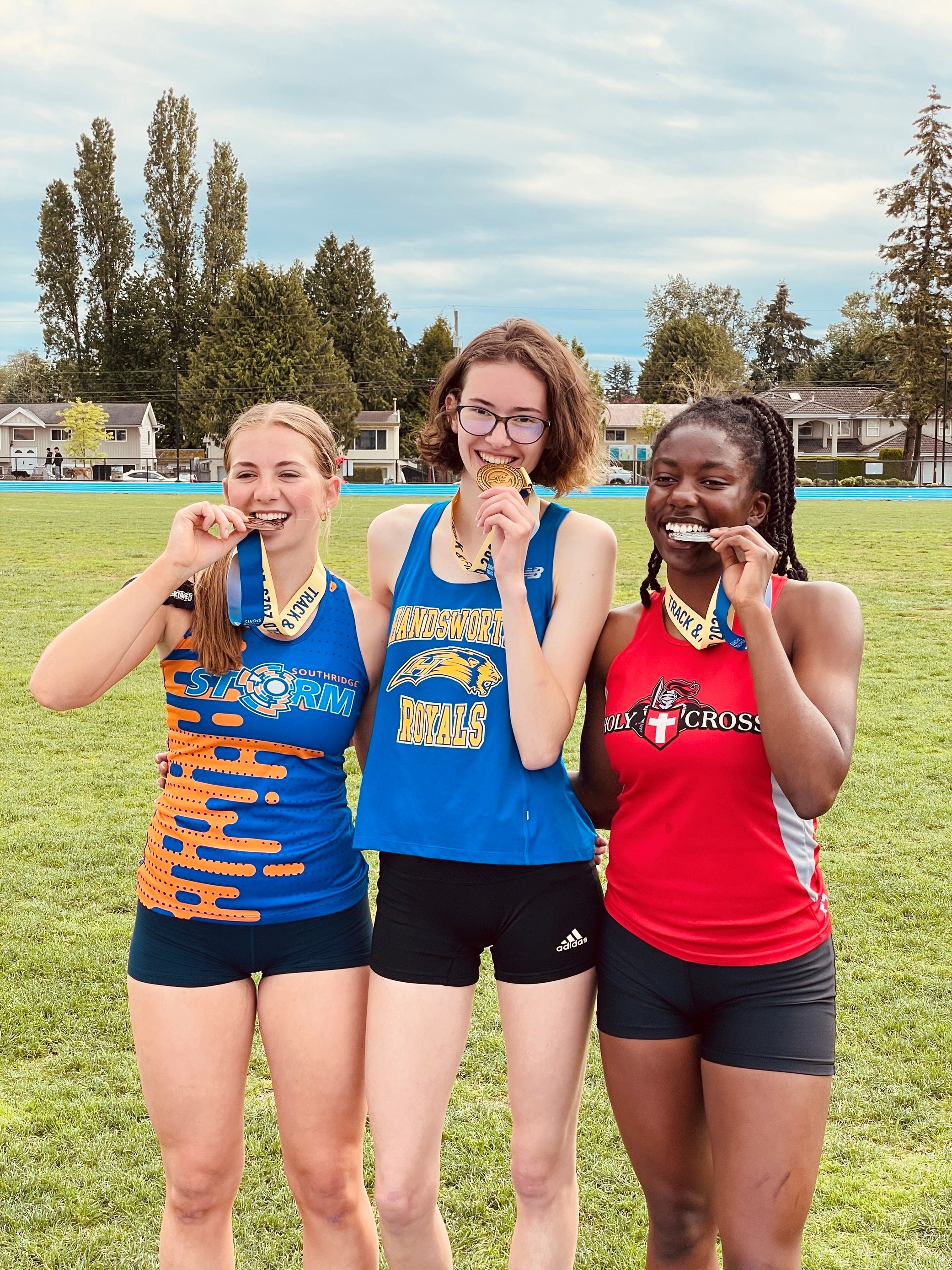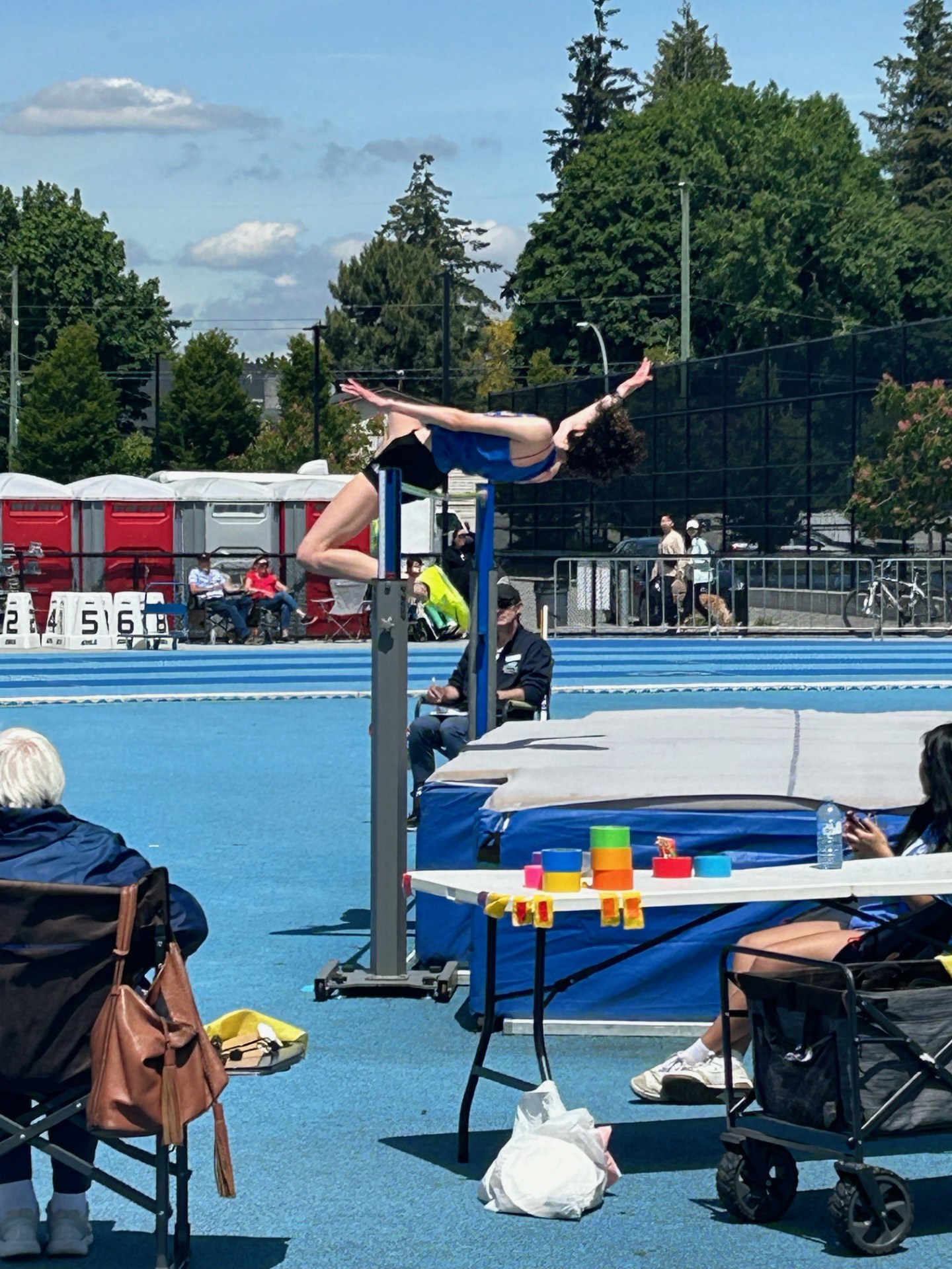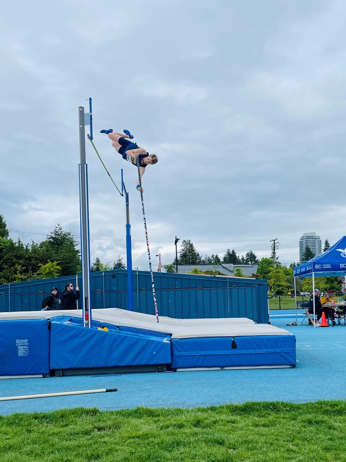 For perspective of these action shots- Marlena is clearing 1.72 meters in the High Jump and William Millard is going over 4.00 meters in the Pole Vault. They both won these respective events in the competition and are both excited to head to Nanaimo on Thursday for the BC Track and Field Championships. It will be Marlena’s last competition as a Royal before she heads to the University of Missouri on a full Track and Field scholarship!