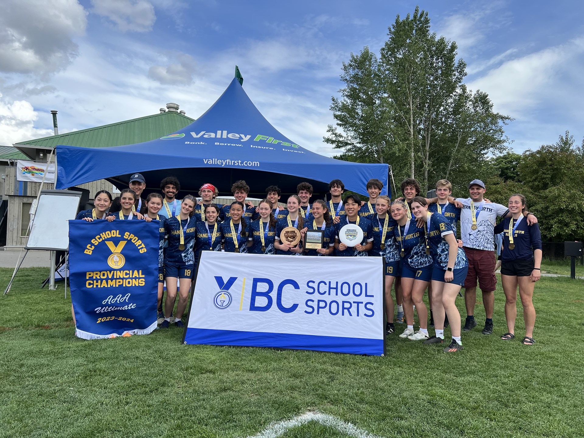 The Senior Ultimate Team are the Champs! The royals, led by an efficient offence and suffocating defence won the AAA Provincial Tournament in Kamloops May 24-25, 2024. The team showed incredible heart and resilience in the final game, weathering a strong South Kamloops team to win their first Provincial banner!