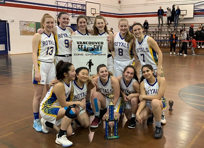 The Senior Girls Volleyball team had an outstanding season, with many significant accomplishments. They started off strong with a fourth-place finish out of 40 teams at the UBC tournament, exhibiting great skill and teamwork throughout. With an amazing turnout of enthusiastic fans, Seniors Night at Handsworth was another highlight. The game against Mulgrave was full of intense play and the Royals prevailed in four sets. Once playoffs began, the Royals were firing on all cylinders and beat Argyle in the semi-finals before facing West Van in the finals. Unfortunately they came up short, losing in three sets, but they were still able to qualify for the Sea to Sky Zone Championships. After fighting their way to the finals against Carson, the team won the Sea to Sky banner in three straight sets, booking their ticket for the BC Provincial Championships on November 30!