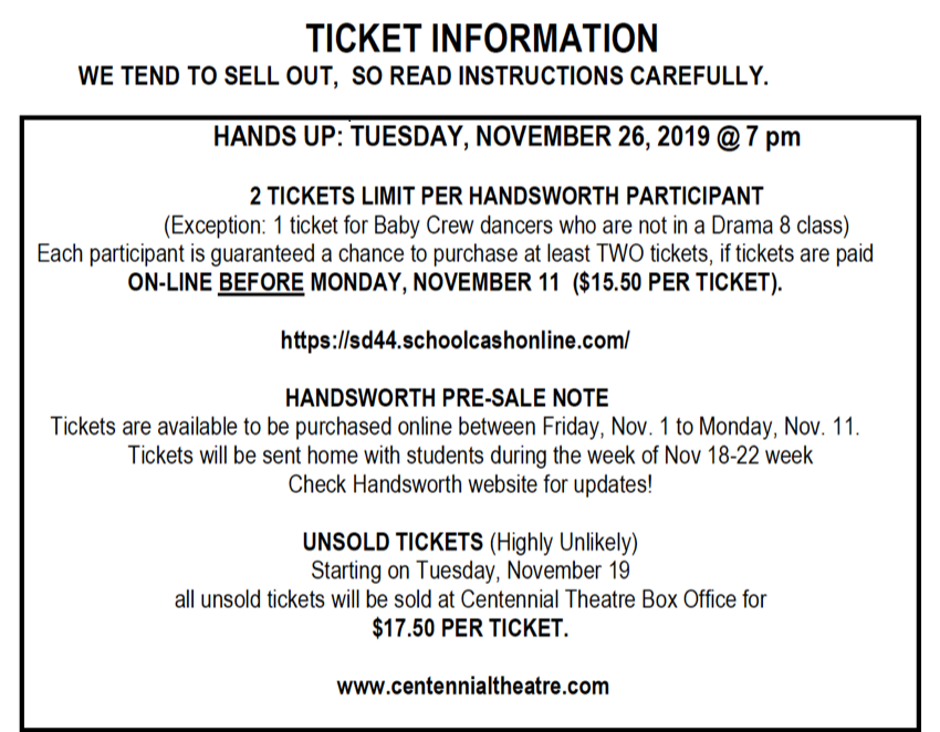 The Fine Arts Department is very proud of the ongoing success of the Dance Program. Dance at Handsworth is a one of a kind with its strong emphasis on student choreography. By following their interests and passion, our dancers have the opportunity to see their creations come to life under the tutelage of their dance teachers. This sense of ownership inspires the younger generations of dancers. Our bi-annual “Hands Up” productions are performed by all the dancers in the program and are primarily choreographed by students for students.