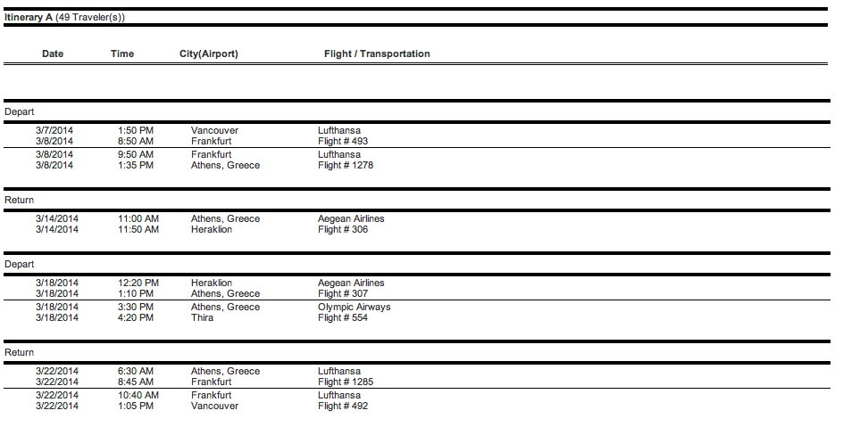 The trip to Greece runs March 7 - 22, 2014