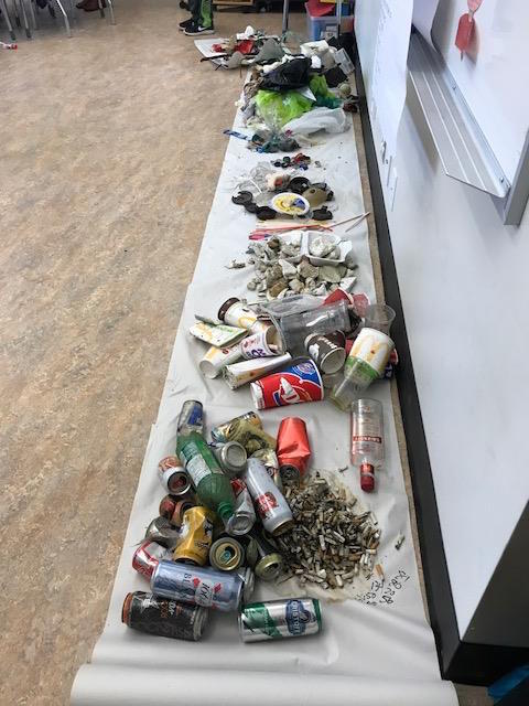 | Several classes participated in the Great Canadian Shoreline Cleanuo (sponsored by the WWF)β Pictured here is what one Grade 3 class found in their clean-up efforts at Waterfront Park: β