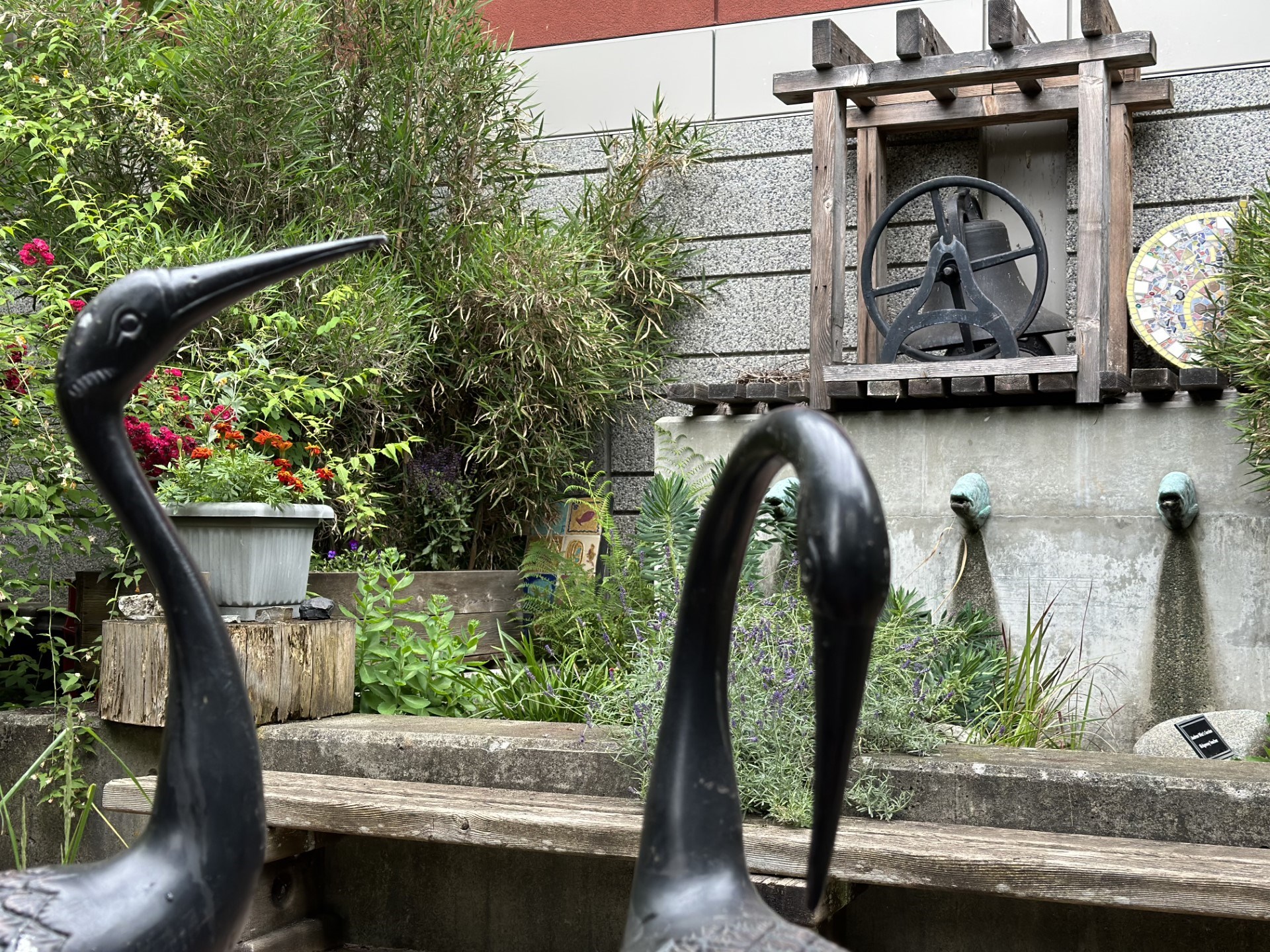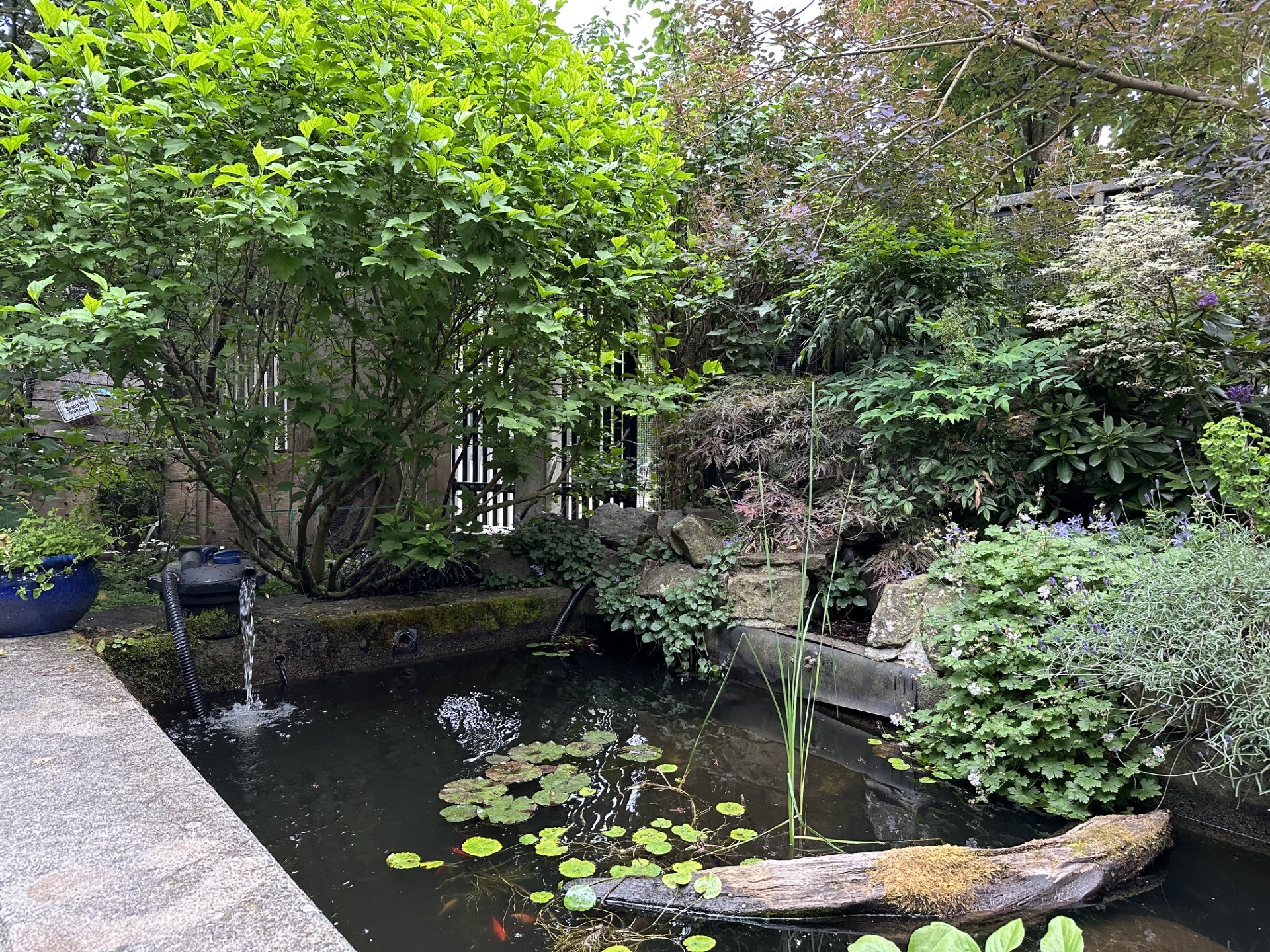 During those early years students grunted and dug holes. Parents sweated, breaking up concrete. Teachers gladly brought plants from their home gardens. People working in the Refuge gradually took ownership. They discovered relationships between their efforts and their neighbours' efforts. Students created new paths to explore the space. Stepping stones were individually poured by students and strategically placed along the paths. A primary class built a deck under our new awning to help create year-round access. Students, parents and staff built a pond that soon became a focal point in the Refuge.