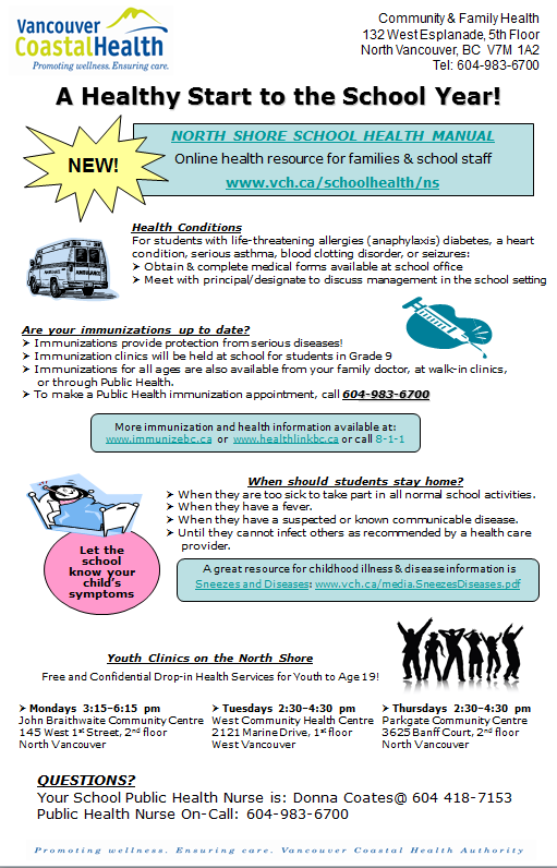 This North Shore School Health Manual outlines the services public health provides to schools and includes access information and resources for schools, parents and youth, including: