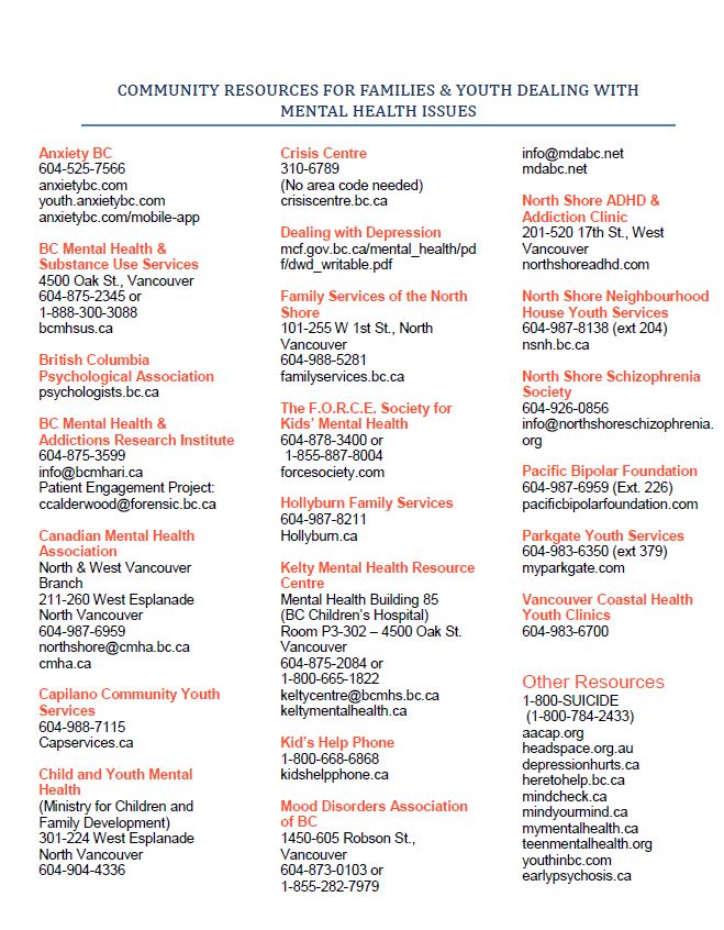 Vancouver who are experiencing thoughts, feelings or behavior and/or