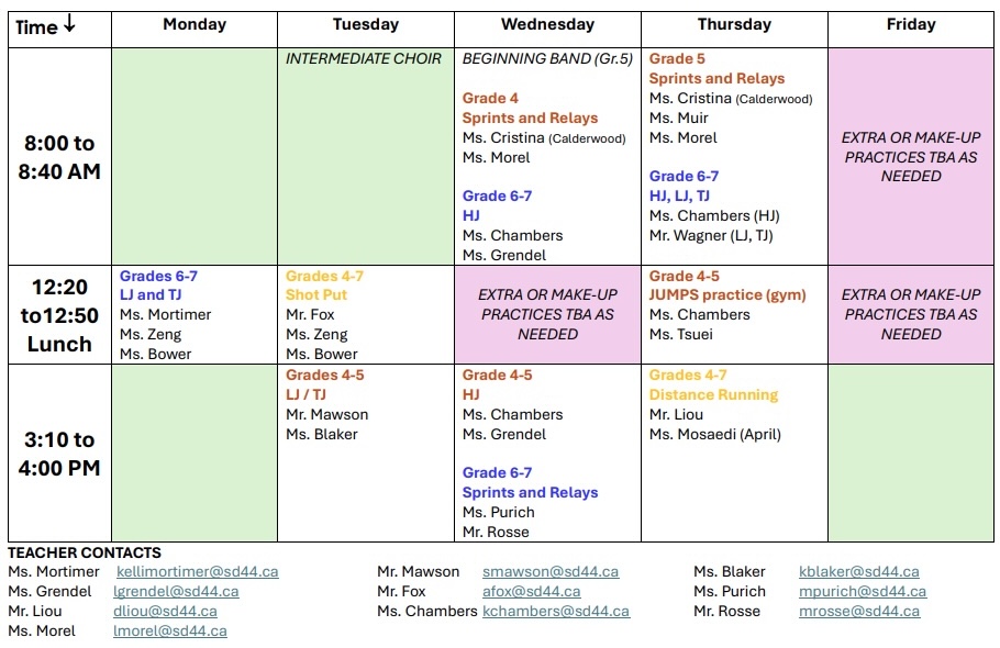 Field Mini Meet - Thursday May 8 - Lynn Valley; 3:30-5:xx - All athletes welcome.